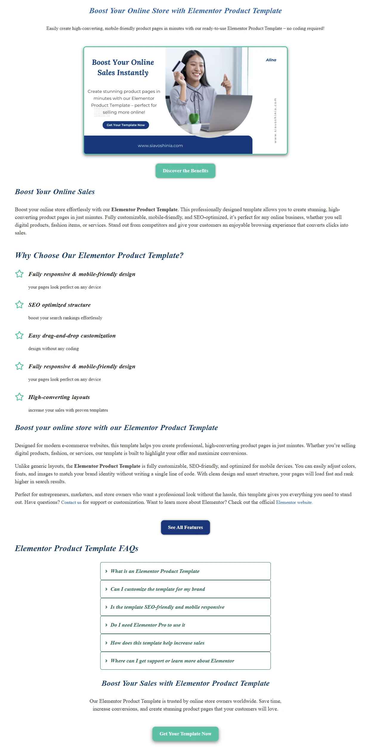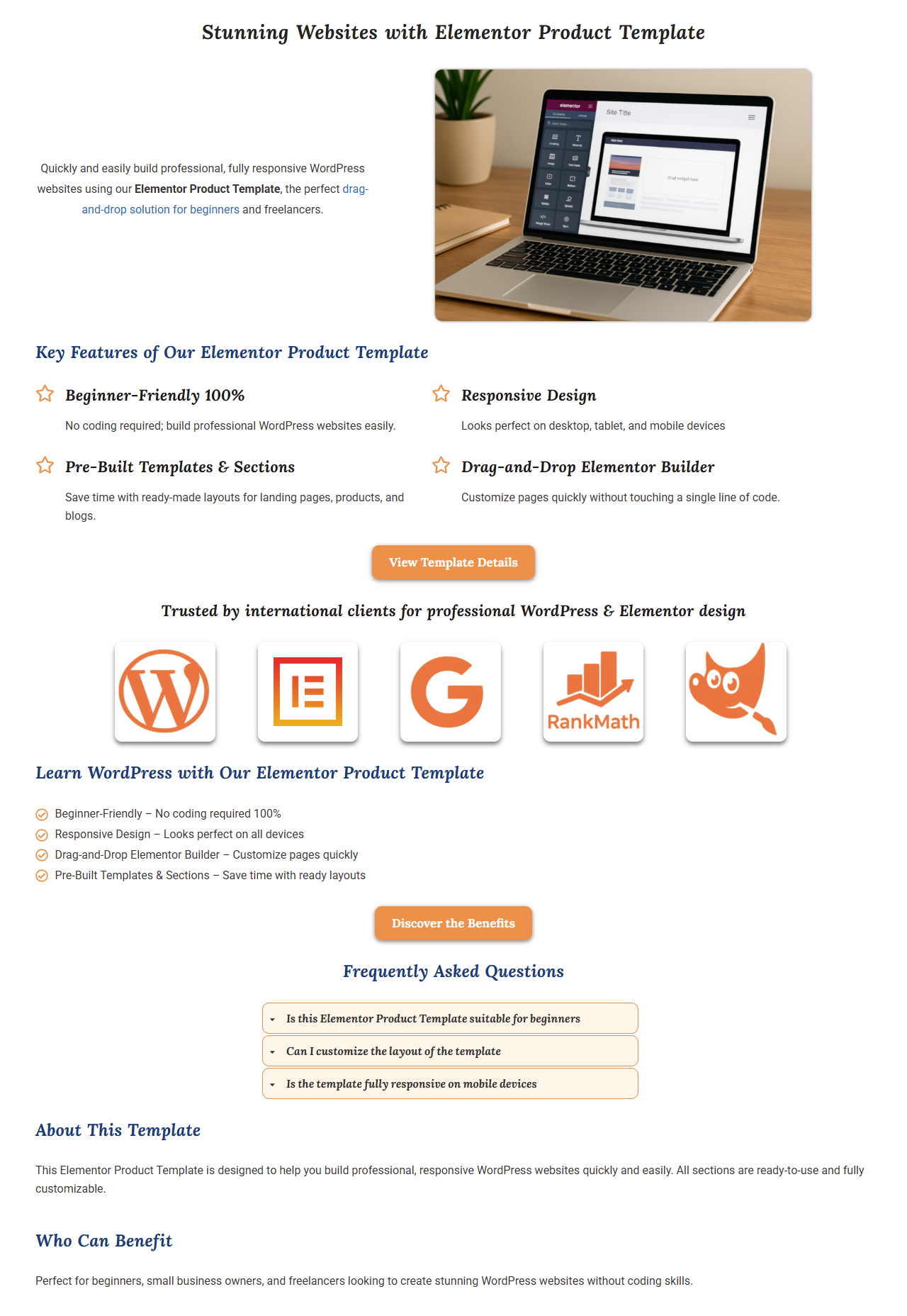 This Elementor template is designed to help you build a modern, responsive, and SEO-friendly WordPress website. Perfect for businesses, portfolios, and e-commerce stores.